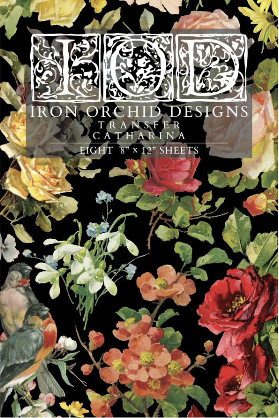 Meet the Catharina IOD Transfer, a tribute to Catharina Klein, whose breathtaking botanical illustrations captivated the late 19th and early 20th centuries. This transfer features sumptuous blooms with exquisite details and soft, painterly touches reminiscent of her signature style. From sprawling roses to charming bouquets and sweet handpainted birds perched on their branches, the Catharina Transfer is brimming with whimsy and natural beauty.